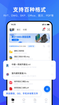 BIM快看支持多种BIM模型、CAD图纸及各类工程文件的查看,通过BIM快看,可以直接打开和查看微信、钉钉、企业微信中所接收到的图纸,也可以直接打开和查看存放在手机或电脑本地的不同版本的模型图纸及各类工程文件。