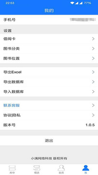 小满图书管理--管理图书,管理会员,管理借阅信息1.产品介绍小满图书管理适用于个人及家庭图书管理,图书馆、绘本馆、学校以及单位图书角图书管理及会员借阅管理。2.主要功能【图书录入】通过扫描图书ISBN码(或手动)录入图书,按照中图馆藏分类整理图书,标记图书位置(个性化设置图书收藏位置),进行书籍管理。【读者管理】新增及管理读者信息,方便进行图书借阅的管理。【借阅管理】通过扫描ISBN码完成读者的借阅管理,同时可查询会员借阅记录。【导出数据】可导出图书信息。电脑版www.xiaomanbook.com微信客服:simo-soft