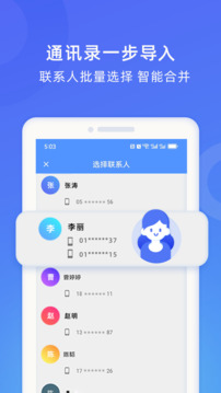 专业手机克隆、换机助手,助您在更换手机时,备份数据。独创交互模式,像聊天一样完成选择和保存数据,完成换机。一键扫码,互联新旧手机,即可互传包括通讯录、图片、视频、应用等数据。特点:【零流量】无需联网,不耗费手机流量,传输速度快。【免数据线】使用热点或者wifi网络连接,隔空传送数据。【一键换机】对话式交互,轻松选择通讯录、图片、视频、应用等手机数据,无需再次下载其他应用。【安全换机】局域网点对点加密传输,数据不上网,隐私有保障