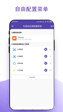 一款可以在手机上,实现类似电脑鼠标右键功能的效率型APP。简单来说,用户可以通过自定义规则,实现在不同的应用上显示不同的菜单功能。比如:在聊天界面,触发截图功能或文字识别功能;在新闻浏览界面,快速截图并保持到收藏夹;在含有二维码界面,快速触发二维码识别功能等。同时,软件提供了虚拟鼠标触发和侧边栏触发两种方式,用户可以无需打开APP也可以触发右键菜单。