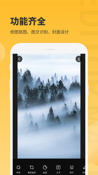 ·图片编辑大师是一款界面优美易操作、可识别图片办公P图的手机PS软件; ·集图片编辑美化、识别文字转文档、拍照翻译的多功能剪修图片合成制作软件。 ·专注于为用户提供各类图片照片编辑美化加工的解决方案,不仅提供图片特效、图片剪裁、图片旋转、图片镜像、风格滤镜、添加文字贴纸、图片涂鸦等图片制作合成的应用解决方案。 -------功能特点------- 【图片识别】 AI智能识别、迅速将图片内容识别,告别繁琐的传统手打。 【图片翻译】 超强的图片翻译引擎、拍照即翻、外文网页、文件浏览阅读无障碍。 【图片转文档】 图片快速识别,生成Word文档,减少中间步骤,提高工作效率。 【旋转裁切】 自由的裁切、旋转、镜像图片,制作证件照、头像、背景图片、手机壁纸、朋友圈图片的好助手。 【风格滤镜】 超多超好用的风格滤镜库:二次元、漫画、少女、热血、小清新、暗黑、科技、复古......等众多风格滤镜,一瞬之间提高作品格调! 【贴纸文字】 各式的图片贴纸和个性文字添加模板,有趣的贴纸加上个性文字,制作各类恶搞图、心情、封面等图片不再难! 【照片涂鸦】 快速、准确的照片涂鸦,展现创意。