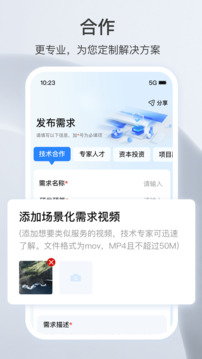 企业用户可以发布技术需求并添加需求描述,方便科研人员了解需求,快速进行合作和对接