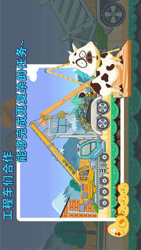 用挖掘机挖土,给土方车装石块,用吊车把小树种好,让装载机压平地面……多种互动,让孩子认识工程车的功能。