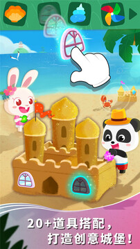 将沙子装入模具,浇上水,用铲子拍一拍,沙堡雏形完成啦,再安上门窗和装饰,Duang!你的城堡建好了!
