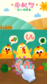动物农场里的小鸡饿了,你能找出小鸡喜欢的美食喂给它吗?接下来去清理羊毛吧,拿起动物洗澡刷,把绵羊刷干净。帮奶牛赶牛蝇,喂它吃牧草。击退胡蜂,保护蜜蜂!宝宝们,你的农场动物能不能健康成长呢?就看你的咯!
