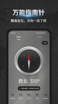万能指南针是一款旅行必备、让你快速找到方向感的实用工具,简洁、准确,一秒辨别方向。使用万能指南针让你不再迷失方向,带给您准确的定位和方向感!精美的360°罗盘旋转指南针样式,水平仪测量工具!可显示当前位置、经纬度还能显示磁场强度、天气温度等气象状况!功能介绍:【指南针】GPS定位地理位置,身在何处指南针都知道。显示当前地理位置、经纬度、磁场等功能。更有360°罗盘旋转刻度,一目了然。【计步器】可记录每日,每周,每月步数,可设定目标完成度。可设置时间提醒,万能计步器!【望远镜】支持单双筒,提供滚轮效果的缩放调节器,实现多种视觉效果【校准指南针】浅显易懂的校准动画,快速学会校准,提高指南针的精准度,方向把控更准确【罗盘样式】多种皮肤样式随意切换,满足您对指南针不同风格的需要,UI美观简洁万能指南针,最好的指南针工具!户外必备!