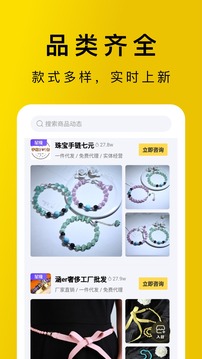【丰富货源】严选商家,特色货源。服装、美妆、名表、饰品、莆田鞋等各个品类货源应有尽有,每日更新,保证您拿到火爆的一手货源。