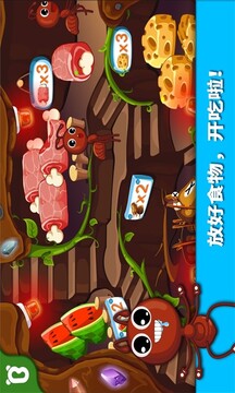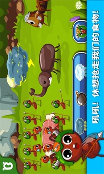等等,地面上还有辛勤觅食的工蚁们,糟糕!它们遇到抢食物的坏家伙啦,怎么办?话不多说,宝宝快打开【宝宝认蚂蚁】App和兵蚁一起帮它们渡过难关吧!