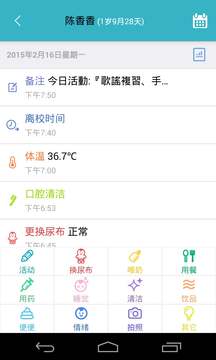 爱托付是供托婴中心的老师记录小朋友每日生活的工具。它可以方便地记录小朋友的各种情况,包括:到校离校时间和体温;饮食;睡眠;排便;情绪;等等。它简单好用,能够给老师带来便利。