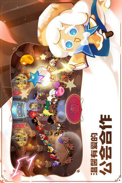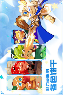 逃离烤箱、建设王国、遇见可爱的朋友!《冲呀!饼干人:王国》是一款结合模拟经营玩法元素的卡牌战斗手游,主要讲述在传说中的面包大陆上,勇敢的饼干们逃出魔女的烤箱,逐渐聚集伙伴,携手创建富饶又美丽的饼干王国的故事。在游戏中,玩家一方面需要创建自己的王国,开垦荒地,建造生产,甚至装修打扮自己的家园,让饼干们安居乐业。同时,也要和饼干们探索未知大陆,在冒险中不断变强。各色的饼干各具魅力,同时也在战斗中发挥着各式各样的作用,如何高效出战就要靠玩家的指导啦。游戏中不仅有可爱的饼干日常,热火朝天的建造生产,也有冒险路上奇妙的故事和热血的对决,更有深远的阴谋在黑暗中伺机而动。快来加入饼干人王国,一探究竟吧!【自由装扮的专属王国】勇敢饼干逃出烤箱,饼干人王国初落成!在王国中不仅有丰富的生产建筑,完备的生产玩法,还有各色的主题装饰,支持高自由度的摆放装扮,打造出风格迥异的王国风景。【刺激惊险的战斗冒险】巍巍壮阔的世界故事已然拉开序幕,饼干们不仅会遇到有伟大梦想自信又糊涂的尖角虫,会遇到蒸汽朋克气质的银杏哥布尔集团,还会遇到带有浓郁芬芳的神秘饼干…除此之外,还有悬赏通缉、王国竞技场等丰富玩法等待你的挑战。【温馨有爱的公会合作】人,更快乐!加入公会不仅可以共同打造公会家园,还可以一起挑战庞大的红丝绒龙,贡献公会烽火,抽取公会扭蛋,获取丰厚的奖励哦~【魅力无限的各色饼干】每一个饼干不仅样貌不同,也都独具性格,或开朗,或社恐,或温柔平静,或胆大心细,饼干之间也充满了惊喜故事,在悠闲的时间里,不妨看看小饼干们都在王国里悄悄做什么吧!
