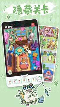 咦?!我怎么进入了猫猫世界!!在这个充满欢乐和惊奇的猫猫世界里,散落着各式各样的小物品,它们都是猫猫们的宝藏。在这款疯狂找东西游戏中,我们将穿梭于猫猫世界中,探访其中的每个秘密角落。准备好挑战自己的观察力和寻找技能,一起来了解这个充满可爱与美丽的世界吧!【独特的玩法方法带来惊喜】在游戏开始时,我们将面对一系列的难题。从每个独特的场景到每个隐藏的物品,都需要我们的努力寻找。只有找到了所有的物品,才能顺利进入下一个关卡。游戏中的难度逐渐升级,让我们刺激十足!当然,如果还差一点点找不齐也不用担心,猫猫神会给予我们伟大的道具,指引我们前往正确的方向。【多种不同场景等你挑战】这款游戏中,我们将穿梭于猫间百态的公园中、于夏日清凉的海滩上、于各式各样其他场景中。每个场景中都存在着独特的小宝藏,需要我们仔细发掘;每个场景都精心设计,让我们感受到探险的无限魅力。【可爱的猫猫陪你一起玩】在旅行途中,我们将会遇到可可爱爱各式各样的猫猫朋友们。他们或在晒太阳、或在烤小面包、或在拖家带口去郊游,或隐藏在草丛中、或蹲在树上,或在自由奔跑,每一位猫猫都是我们喜欢的样子。虽然很不舍,但是这些可爱的伙伴们还会为我们提供提示和道具,从而帮助我们更快地找到他们的小宝藏。与这些独特的猫猫在这个世界中邂逅,是这个游戏最大的乐趣之一。【游戏特点】这款疯狂找东西游戏充满了乐趣、可爱与惊喜。游戏场景设计精美独特,猫猫角色活灵活现,玩法内容丰富多彩。在这款游戏中,我们能够接触到不同类型的物品,同时难度适中,对我们的观察力、快速反应力,以及发掘能力提出了要求。这样一款旅途必备的休闲又可爱的找东西游戏,你真的不会心动吗!快来下载这款有趣的游戏,和我们一起探开启猫猫世界的探险吧!