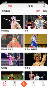 经典名家名段戏曲大全,全部免费听,戏曲多多,海量戏曲,覆盖各类剧种,大量好听的京剧、豫剧、越剧等戏曲名段,不仅有国粹京剧,也有地方戏曲。德艺双馨戏曲大师,菊坛新秀,梅兰芳、尚小云、程砚秋、俞振飞、侯永奎、张继青、袁雪芬、尹桂芳、徐玉兰、常香玉、马金凤等艺术家全覆盖,免费听戏看戏就用戏曲大师!京剧:沙家浜、武家坡、穆桂英挂帅、孟姜女、窦娥冤、四郎探母、辕门斩子、锁五龙、三娘教子、贵妃醉酒、霸王别姬、孔雀东南飞、李逵探母、玉堂春、铡美案、打龙袍、锁麟囊、空城计、失街亭、宇宙锋、苏三起解、杜十娘、花木兰、将相和豫剧:花木兰、十五贯、红楼梦、宇宙锋、穆桂英挂帅越剧:情探、苏三起解、祥林嫂、打金枝黄梅戏:天仙配、十八相送、女驸马评剧:祥林嫂、情探、凤还巢秦腔:赵氏孤儿、三娘教子、将相和、铡美案、辕门斩子、打金枝、空城计吕剧:穆桂英挂帅川剧:空城计、贵妃醉酒平调剧:十五贯抚州采茶戏:打龙袍晋剧:范进中举楚剧:打金枝、秦香莲碗碗腔:铡美案、贵妃醉酒粤剧:祥林嫂、情探芗剧:十八相送、打金枝看戏还支持投屏到家里的电视上进行观看哦