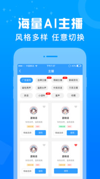 促销广告配音是一款文字转语音配音软件,输入文字轻松转换语音。适用于商场店铺广告促销配音、地摊叫卖制作、有声朗读等多种场景。