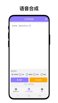 自定义语音助手是一款离线语音工具,核心功能包括语音识别和文字转语音。语音识别基于端侧AI模型,无需联网即可将语音实时转为文字,支持复制、分享和历史记录管理。文字转语音提供素英雪、古念、傅时雨、冰娇、霸总五种音色,可在线播放或导出音频文件分享。所有语音处理均在本地完成,无需上传云端,保障用户隐私安全。