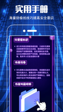 一款出门在外必备的小工具,可以帮您尽量排除身边隐藏的隐患,安全宝能够准确靠谱帮您找到联网偷拍摄像头,是保护您和家人朋友隐私安全的好帮手!旅游住酒店、民宿、客栈,生活中租房、合租、拼宿舍,去购物在洗手间、更衣室、化妆间,偷拍摄像头可能无时无刻在偷拍您的隐私,猥琐大叔透过双面镜偷窥您的生活。更可怕的是偷拍已经成为产业链,您的隐私可能成为别人在网络观看的视频。手机相机发现红点、保护您的隐私安全。防狼手电,必要时可发出闪光,原离不安全模拟来电:遇见不想应酬的人,想离开,却正烦着找个理由?使用虚拟来电,通过设置姓名、号码、来电语音、来电次数,来电间隔,来电界面,软件会在指定时间会模拟来电来迷惑对方,让对方误以为别人有急事找你,借此脱身!