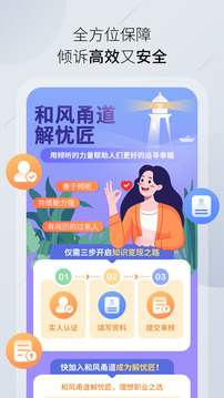 1、提供预约解忧匠服务的平台,倾诉人可面对面像解忧匠倾诉心事,与线上倾诉相比,面对面倾诉的疗愈效果更佳;2、平台的解忧匠是善于倾听、真正懂得倾听艺术的人,能够用倾听的力量带给倾诉人更深的疗愈;3、平台提供全方位的保障、合理化的流程,让有心事的人可以随时找到倾诉的出口、缓解压力